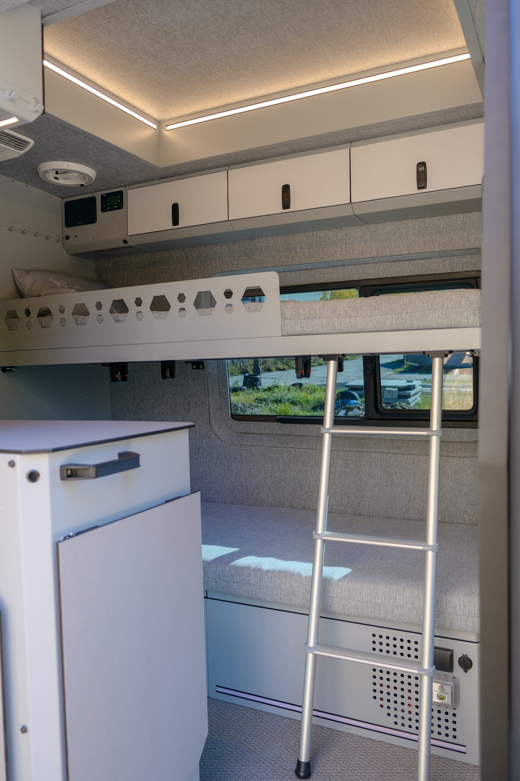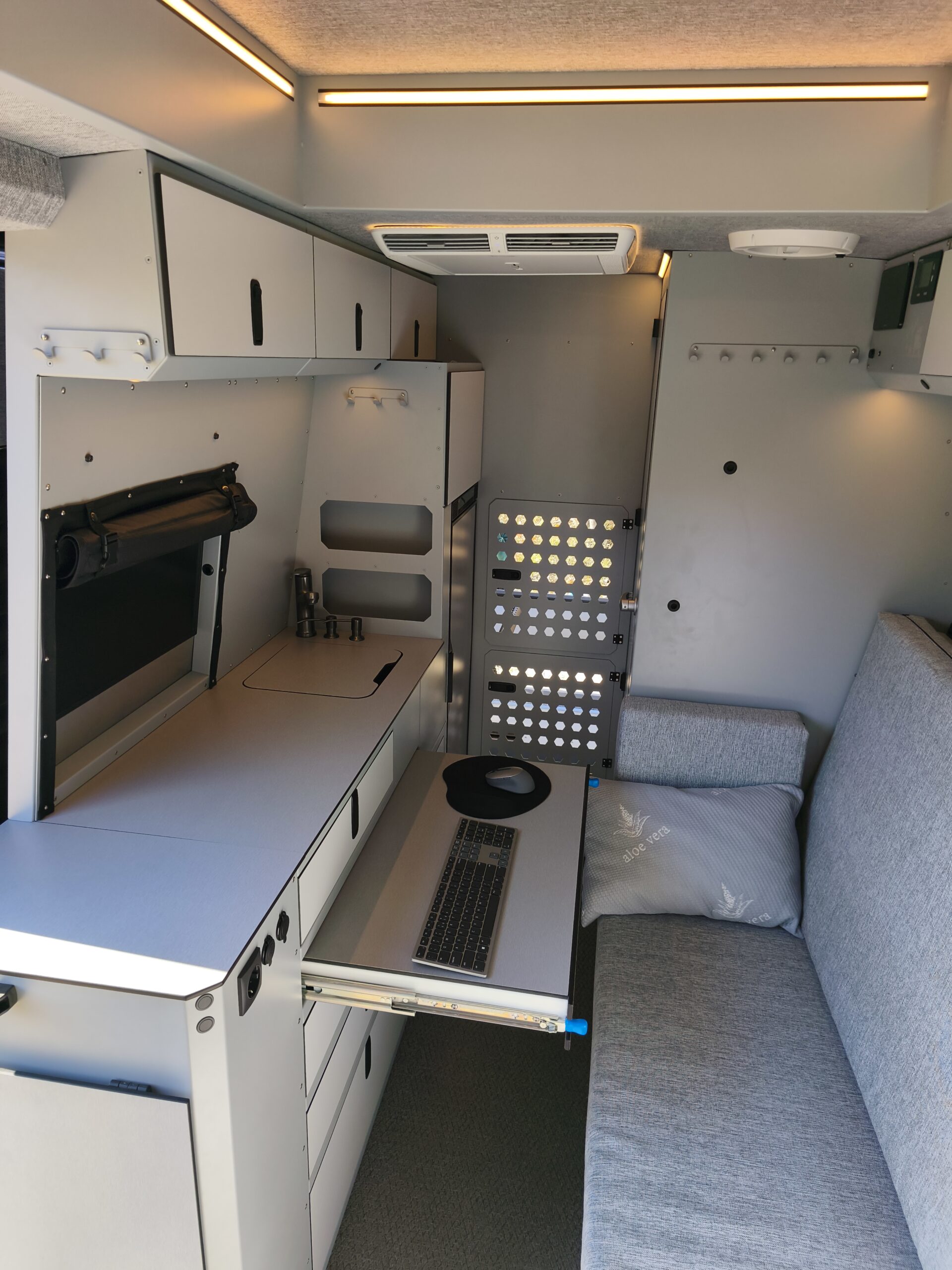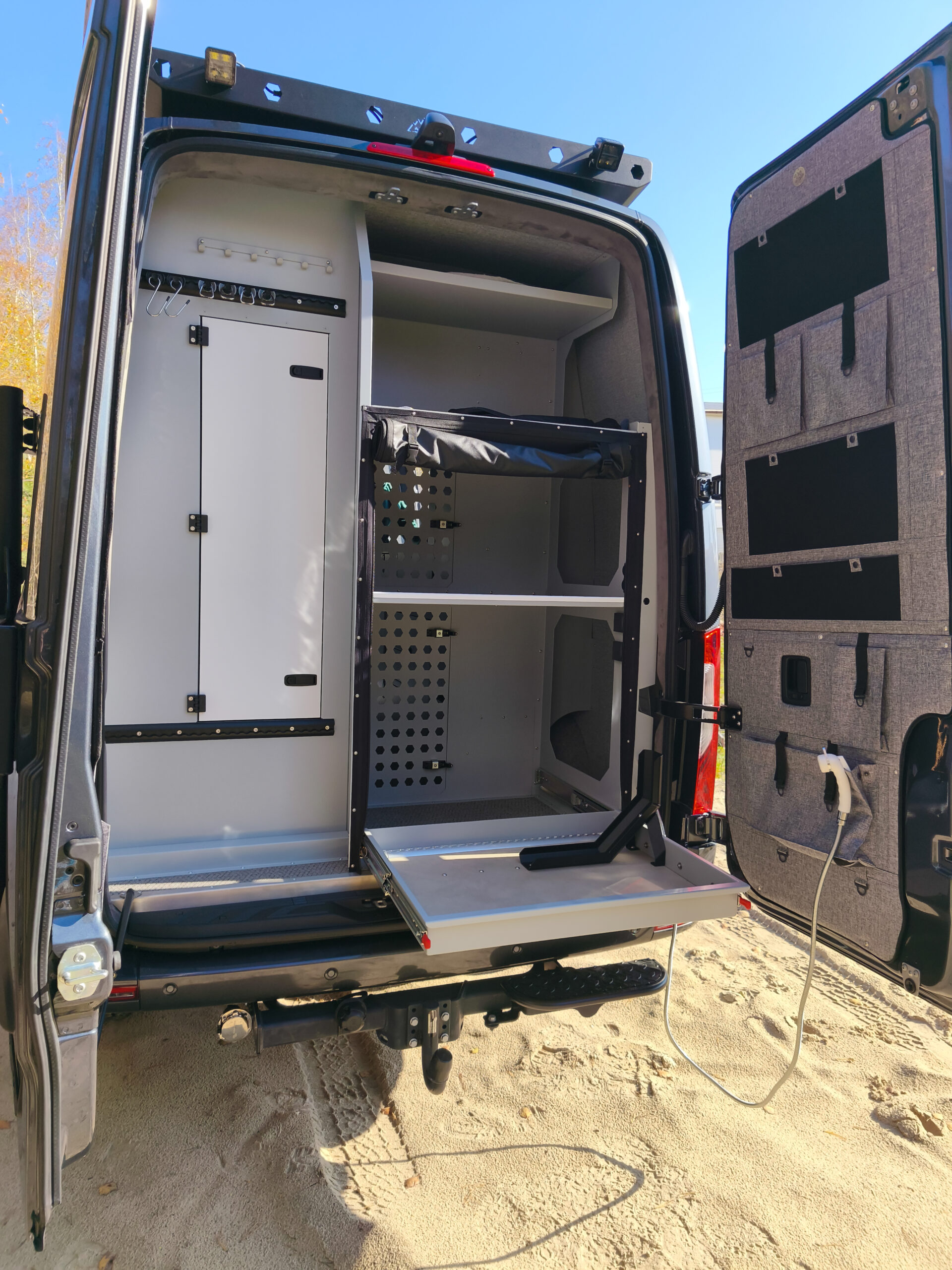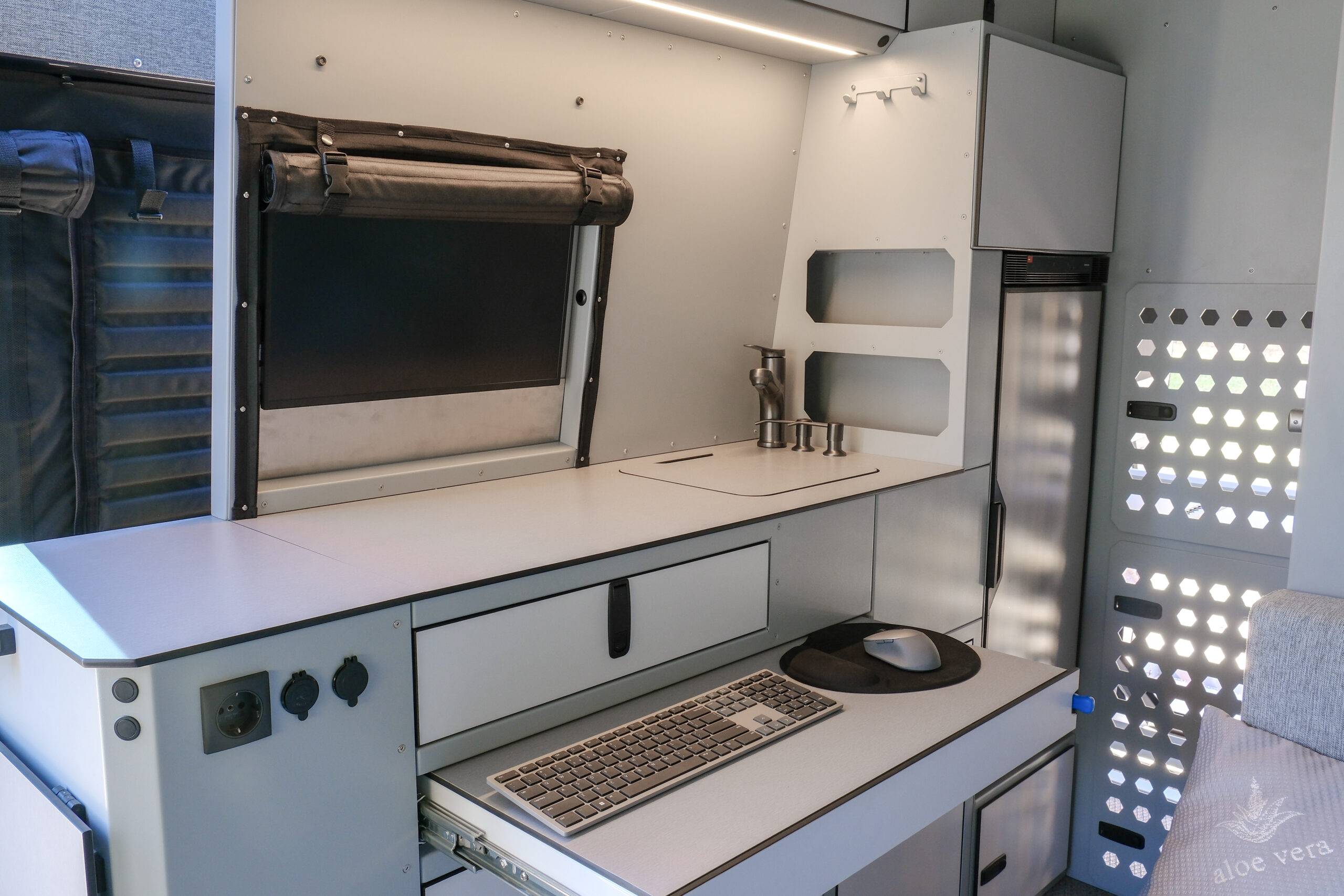 Celem projektu było zaprojektowanie i wykonanie customowej zabudowy Mercedesa Sprintera w formie mobilnego biura klasy premium, gdzie stylistyka nadwozia pozostaje dyskretna i nie sugeruje funkcji jego wnętrza, umożliwiającego komfortową, całoroczną pracę zdalną w dowolnej lokalizacji.