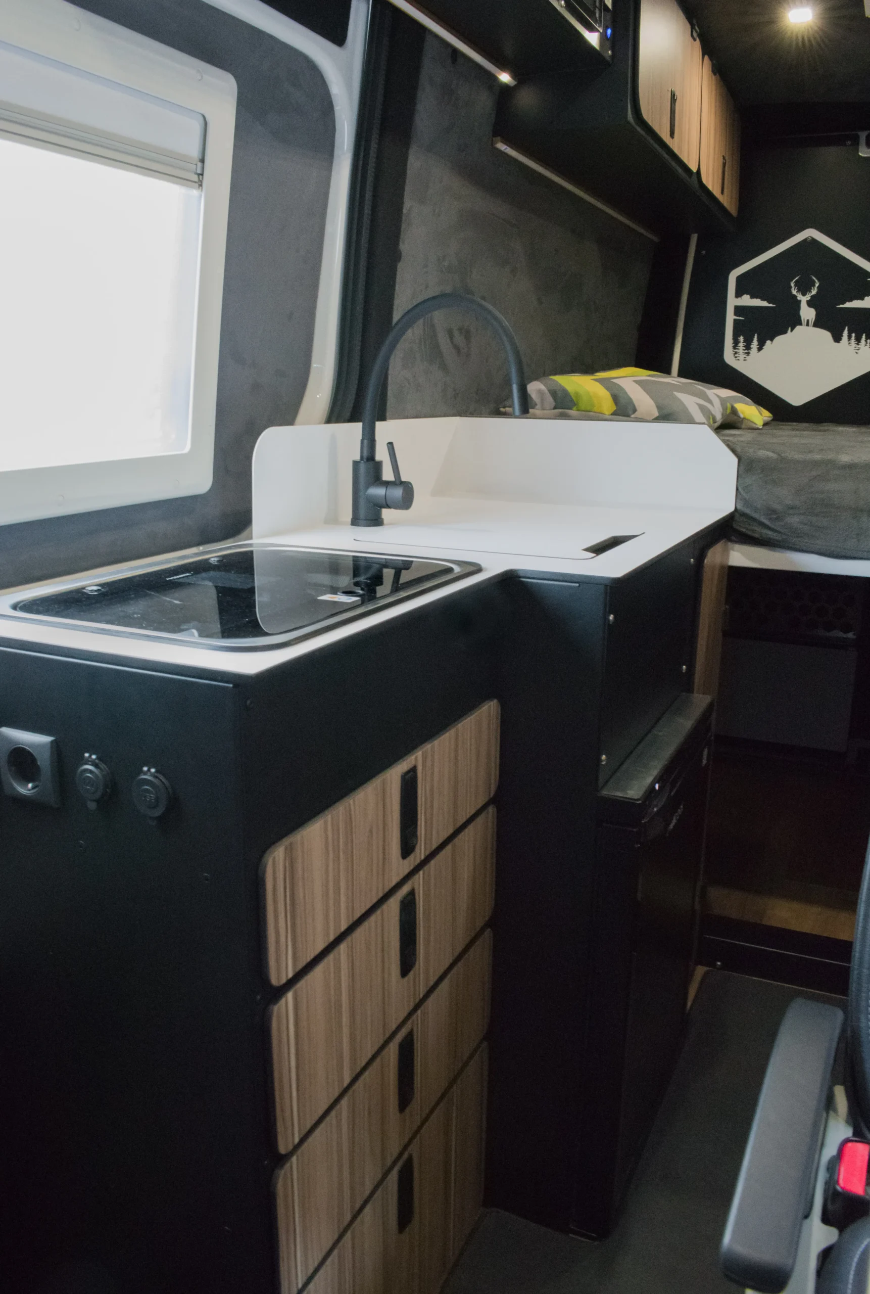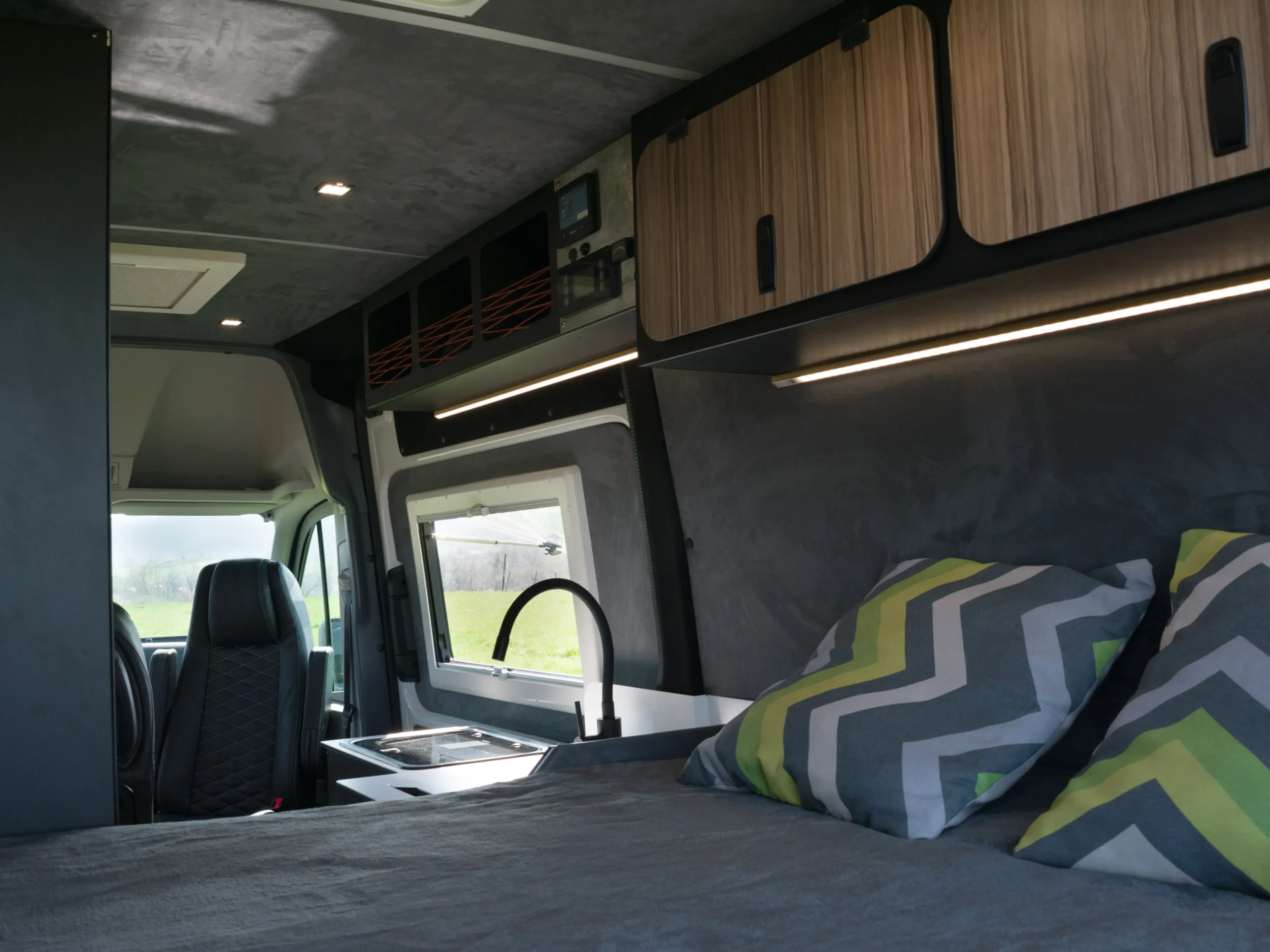 Ten VW Crafter II L3H2 został zbudowany na indywidualne zamówienie – od zera. W tym przypadku nie tylko sam pojazd został przystosowany do roli kampera, ale także jego podzespoły i akcesoria! Projekt powstał z myślą o jakości, niskiej wadze oraz eliminacji drewna w celu uniknięcia potencjalnych problemów eksploatacyjnych.